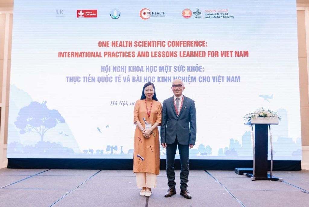 Chị Vũ Thị Phượng chụp ảnh cùng ông Tô Việt Châu – Phó Vụ trưởng Vụ Hợp tác quốc tế (Bộ Nông nghiệp và Môi trường). Ảnh: NVCC.